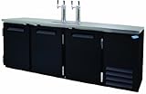 Construction: door locks furnished standard, self-closing door with safety stop at 120 degree with recessed handles and heavy duty chrome plated hinges. Polished chrome finish draft arms with faucet and connecting lines and stainless steel beer drop pan. Exterior cabinet made of galvanized, prepainted steel with baked black polyester paint, sturdy stainless steel top. Bumpers on the back of the cooler provide protection. Glavanized steel interior offers ample storage space of beer kegs. Refrigeration: forced air evaporator for quick temperature pull-down. Heavy duty R-134a condensing unit made of copper and aluminum, resistant to rust and saline environments with easy access for maintenance.