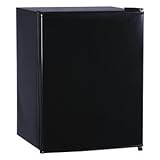 Refrigerator, Compact, 2.4 Cu. Ft. Refrigerator Capacity, Refrigerator Temperature Range (C) 0 to 10, Refrigerator Temperature Range (F) 32 to 50, Control Type Dial Thermostat, Black, Manual Defrost, Cord Length 6, Voltage 115, 1.3 Amps, Door Hinge Reversible, Door Type Can-shelf with bottle rack, 25 Height, 18 5/8 Width, 17 3/4 Depth, Includes Two wire shelves, separate chiller compartment, user manual and energy tag, two height adjustable feet, Energy Star Rated, Agency Compliance cULus